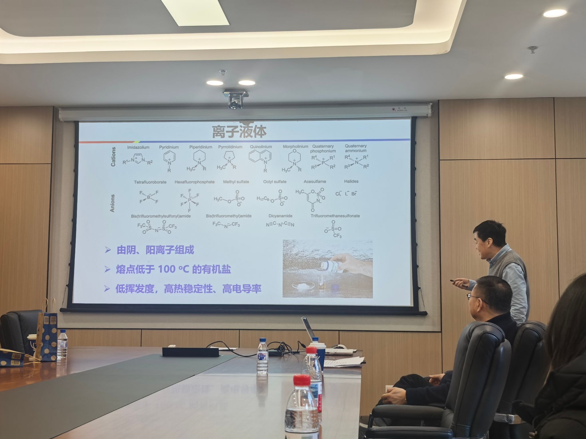 严峰教授以“基于(聚)离子液体能源器件”为题作了报告。严峰教授是江苏省新型高分子功能材料工程研究中心主任,曾获江苏省科学技术一等奖、教育部自然科学二等奖,在《自然-材料》、《自然-电子学》等重要国际期刊发表论文200余篇。严教授阐释了聚离子液体作为离子聚合物兼具离子液体与高分子聚合物的优点,并因其非流动性而成为研究热点。报告涵盖了该类材料在能源器件中的制备工艺与应用前景。