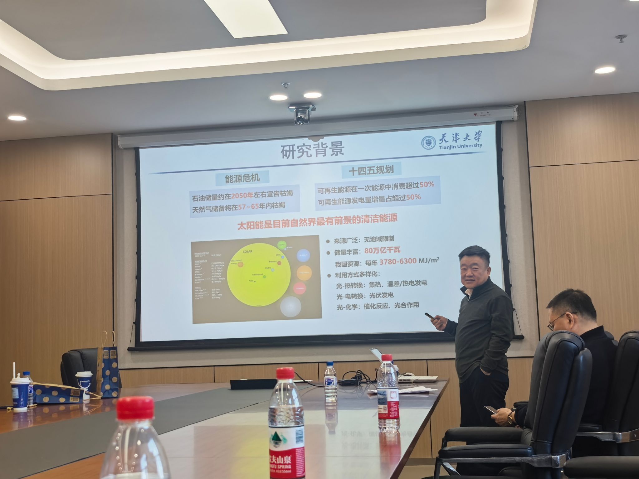 封伟教授以“偶氮基光热相变储能材料研究进展”为题作了报告。封伟教授是科技部中青年创新领军人才,英国皇家化学会会士。他介绍了一种光热转换效率达92%、导热率为10 W/m·K的复合相变材料,该材料在太阳光照下可快速触发相变,储热密度超过200 J/g,且循环1000次后性能衰减低于5%。封伟教授强调,这种材料无需外部电源即可实现可控释热,适用于建筑供暖等多场景,有效解决了能源供应中断问题。