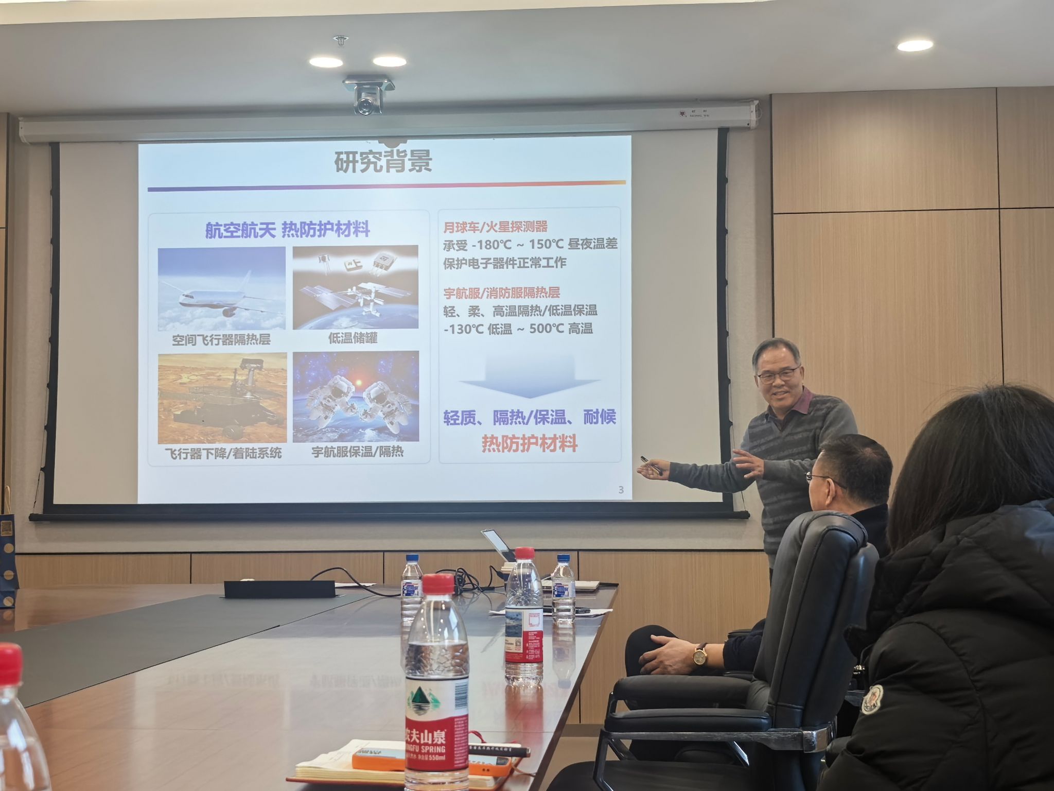 江南大学至善特聘教授刘天西报告了“聚酰亚胺气凝胶复合材料”的研究进展。刘天西教授是英国皇家化学会会士,现任多家国际期刊编委。刘教授团队在先进材料、德国应用化学等重要国际期刊发表论文600余篇。刘教授重点介绍了通过动态溶胶-凝胶策略和纳米颗粒调孔增强方法,提升聚酰亚胺气凝胶力学性能,实现了其隔热性突破。该材料兼具高孔隙率与高强度,并开发出航空级阻燃版本,为飞行器舱体隔热提供了新选择。